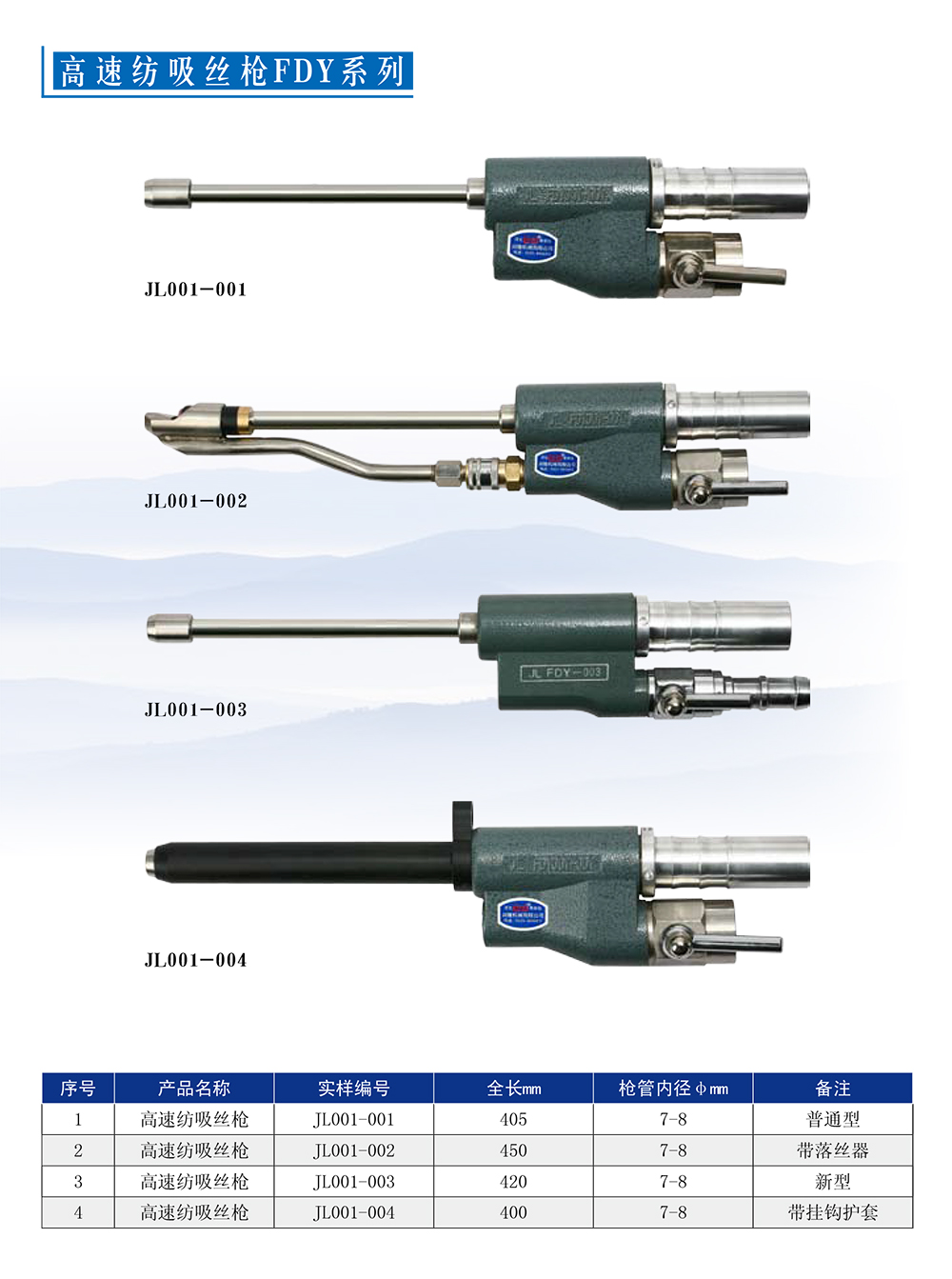 主營各種系列吸絲槍和各種規(guī)格快速插座、升絲拉桿為主。吸絲槍主要包括高速紡FDY、 POY、短絲槍、工業(yè)絲槍,包括紡DTY、加彈機(jī)系列。來圖來樣生產(chǎn)。