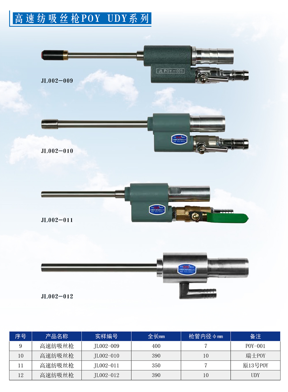 主營各種系列吸絲槍和各種規(guī)格快速插座、升絲拉桿為主。吸絲槍主要包括高速紡FDY、 POY、短絲槍、工業(yè)絲槍,包括紡DTY、加彈機(jī)系列。來圖來樣生產(chǎn)。